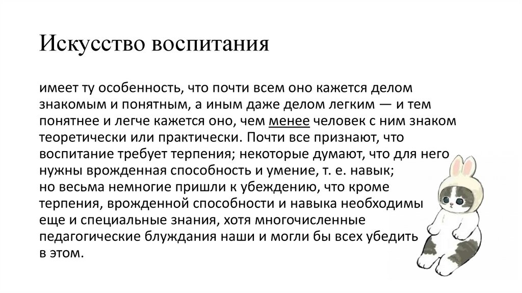 Искусство воспитанияимеет ту особенность, что почти всем оно кажется делом