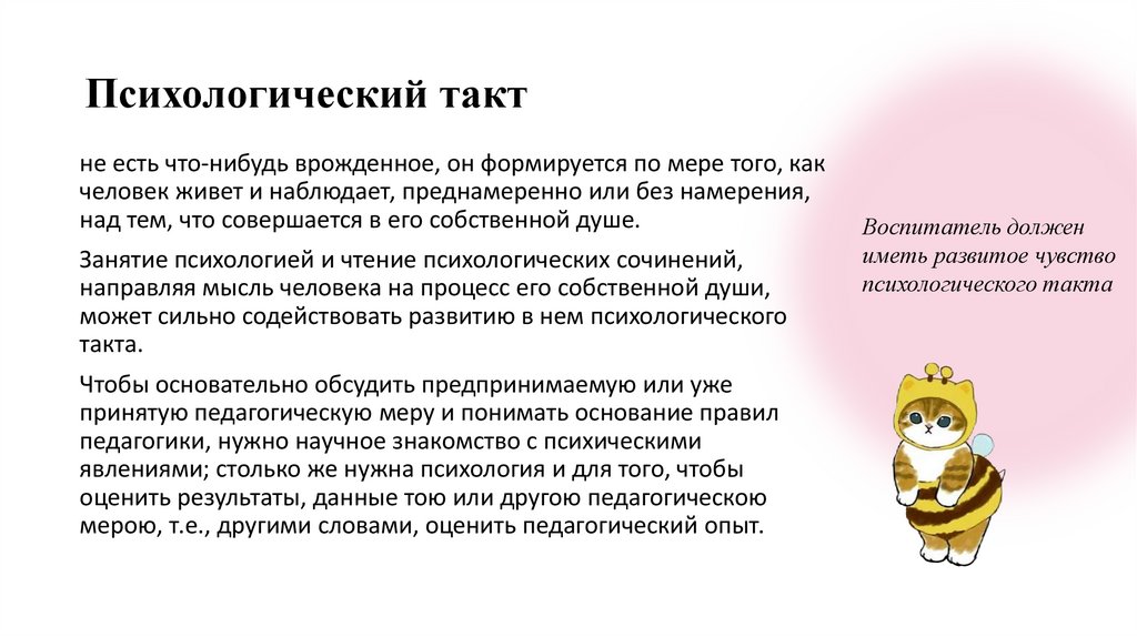 Психологический тактне есть что-нибудь врожденное, он формируется по мере того, как