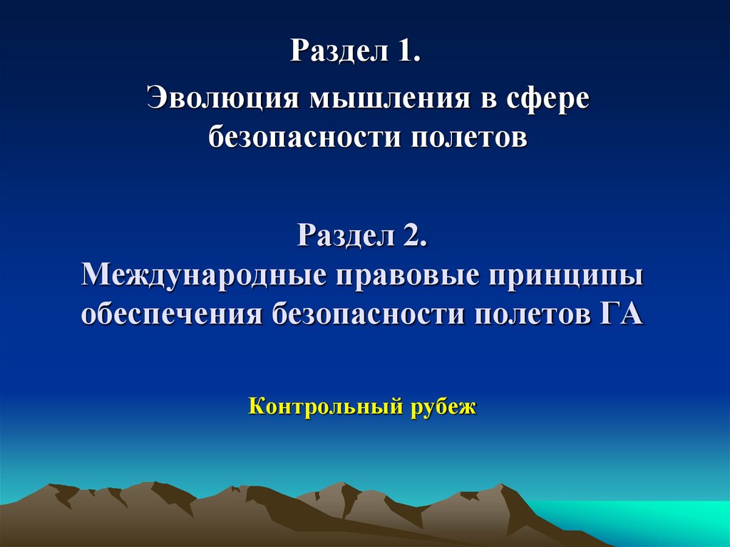 1. Раздел 2. Международные правовые принципы обеспечения безопасности полетов ГА Контрольный рубеж