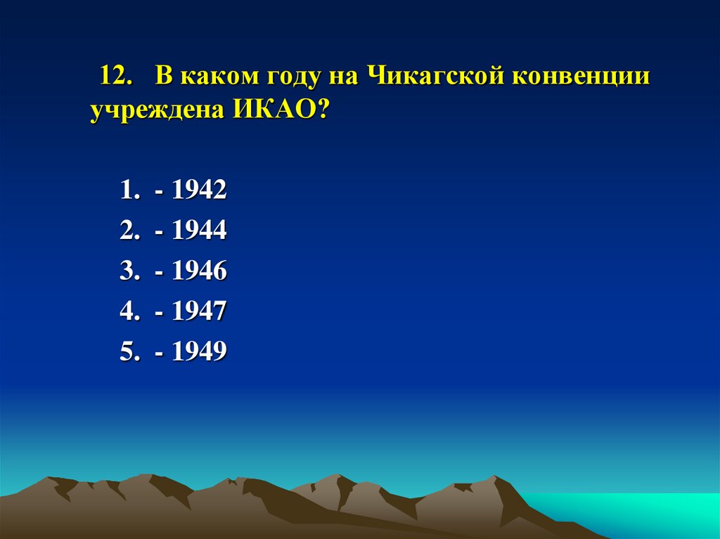12. В каком году на Чикагской конвенцииучреждена ИКАО?