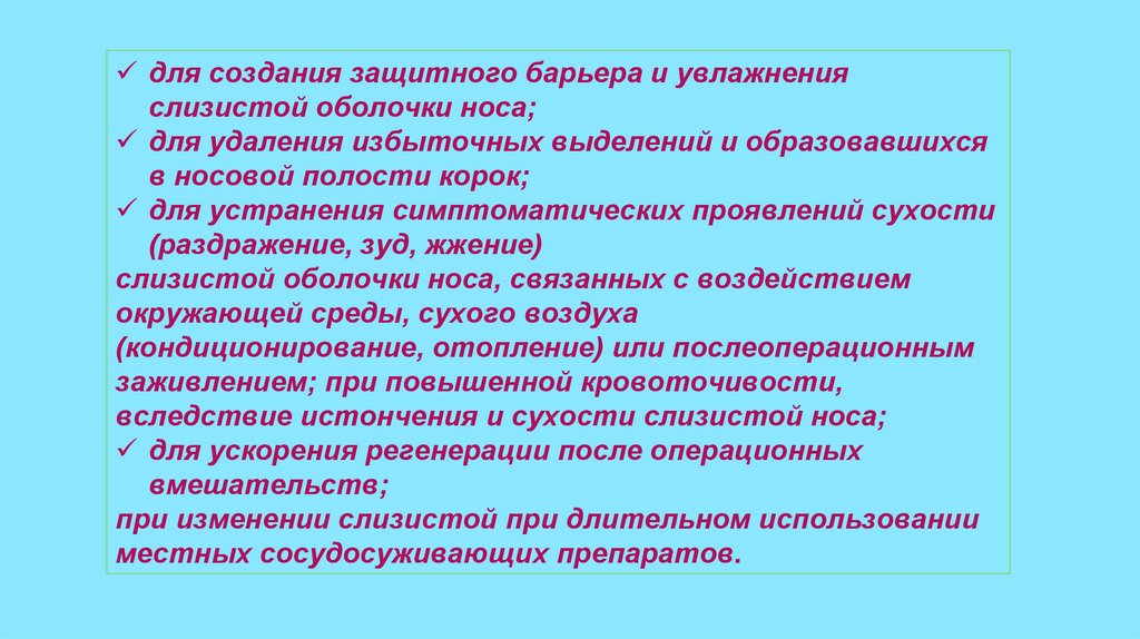 для создания защитного барьера и увлажненияслизистой оболочки носа;