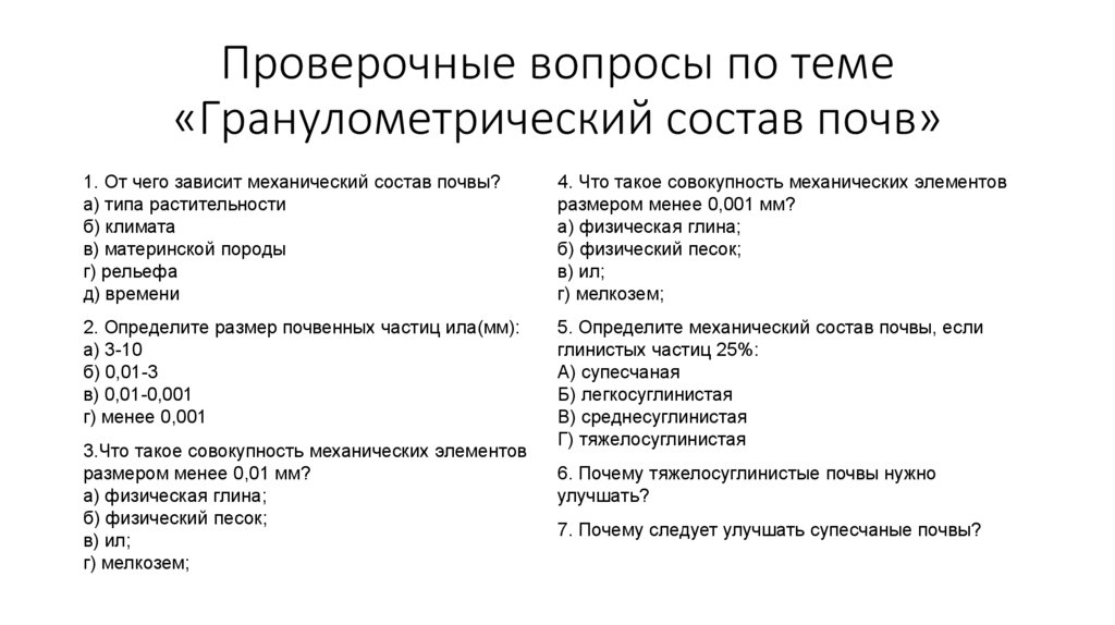 Проверочные вопросы по теме«Гранулометрический состав почв»