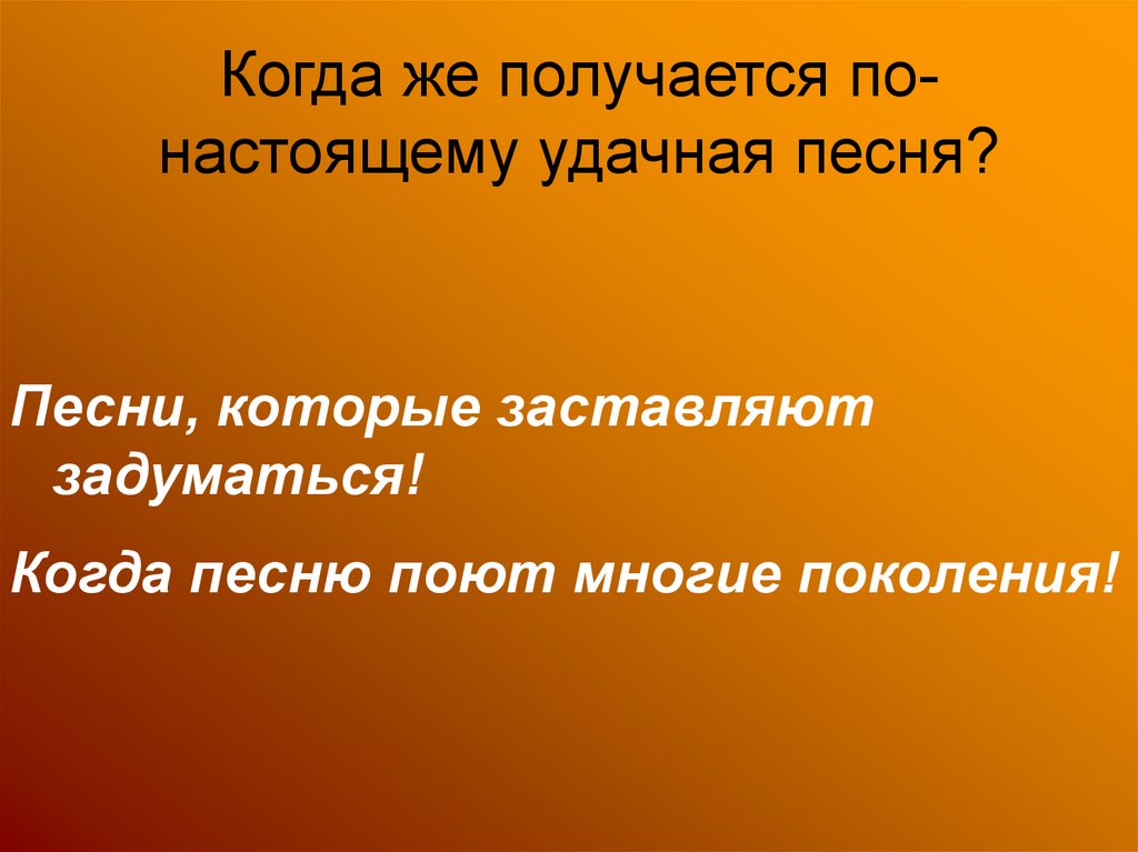 Когда же получается понастоящему удачная песня?Песни, которые заставляют
