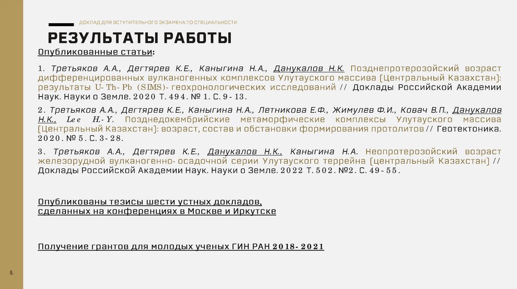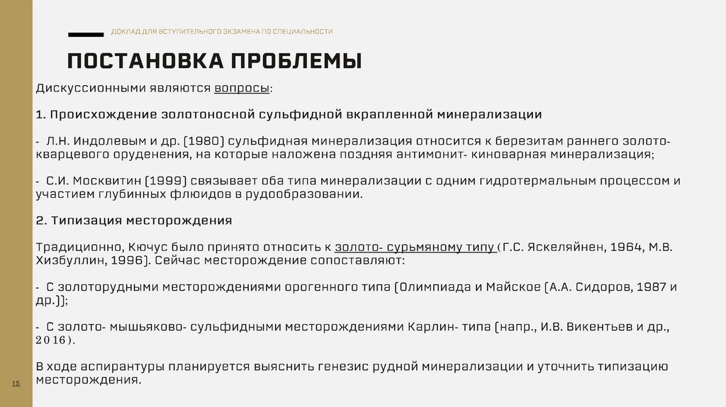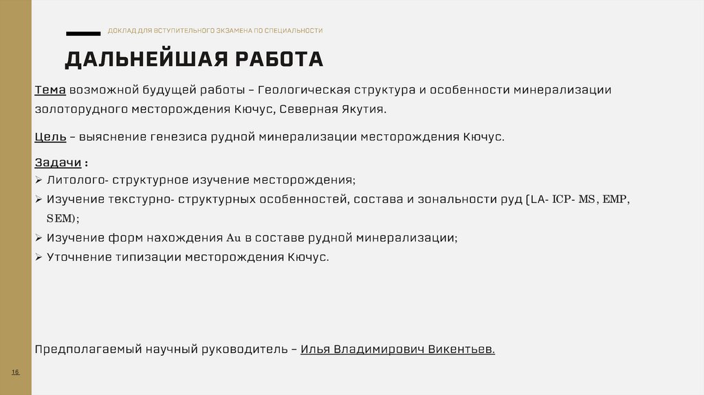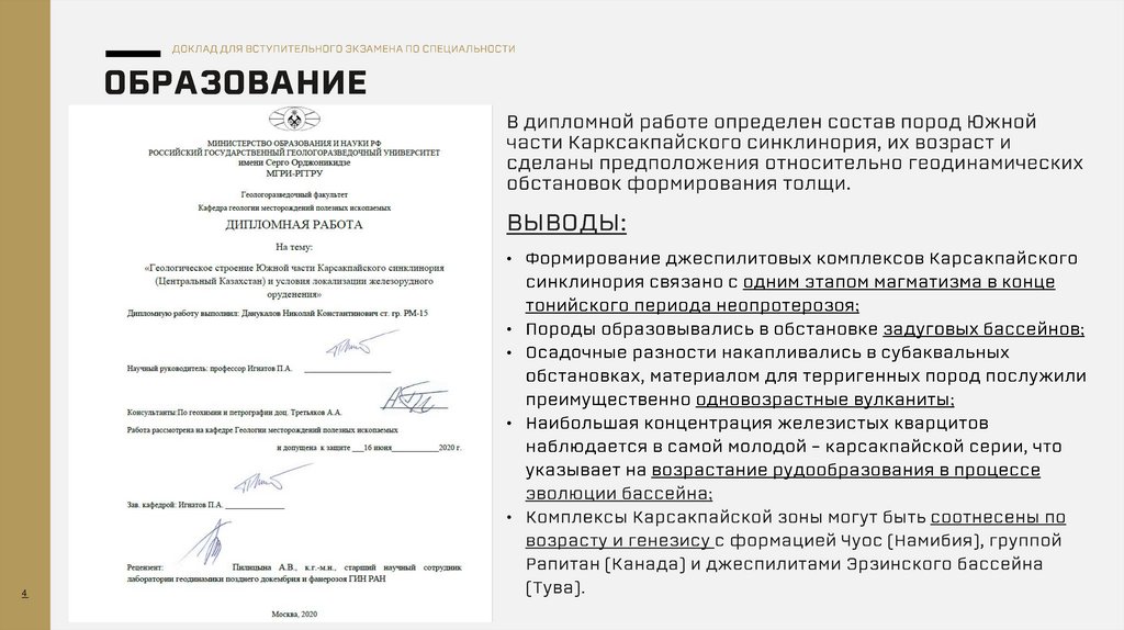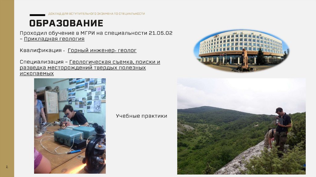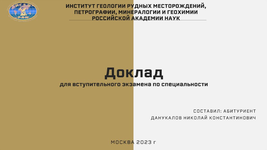 Доклад для вступительного экзамена по специальности 21.05.02 - Прикладная геология