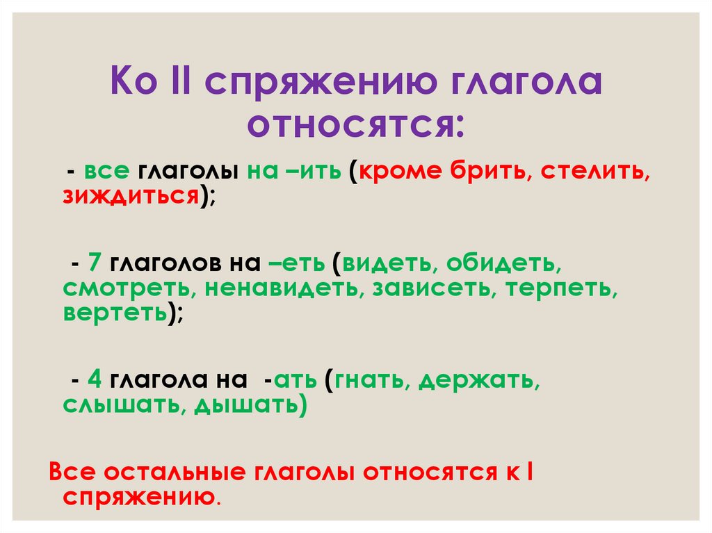 глаголы II спряжения