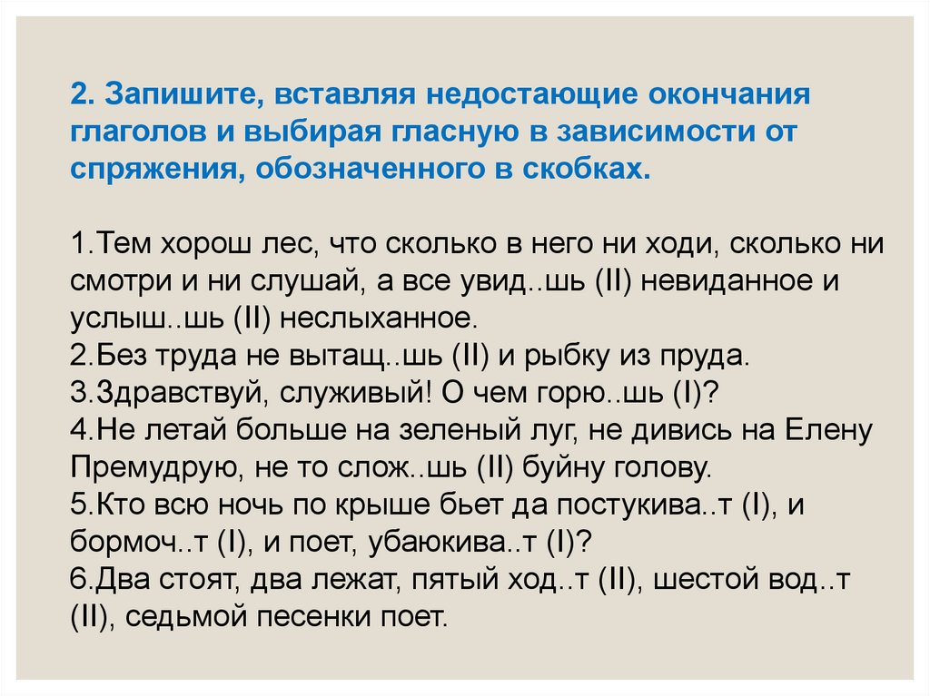 2. Запишите, вставляя недостающие окончанияглаголов и выбирая гласную в зависимости от