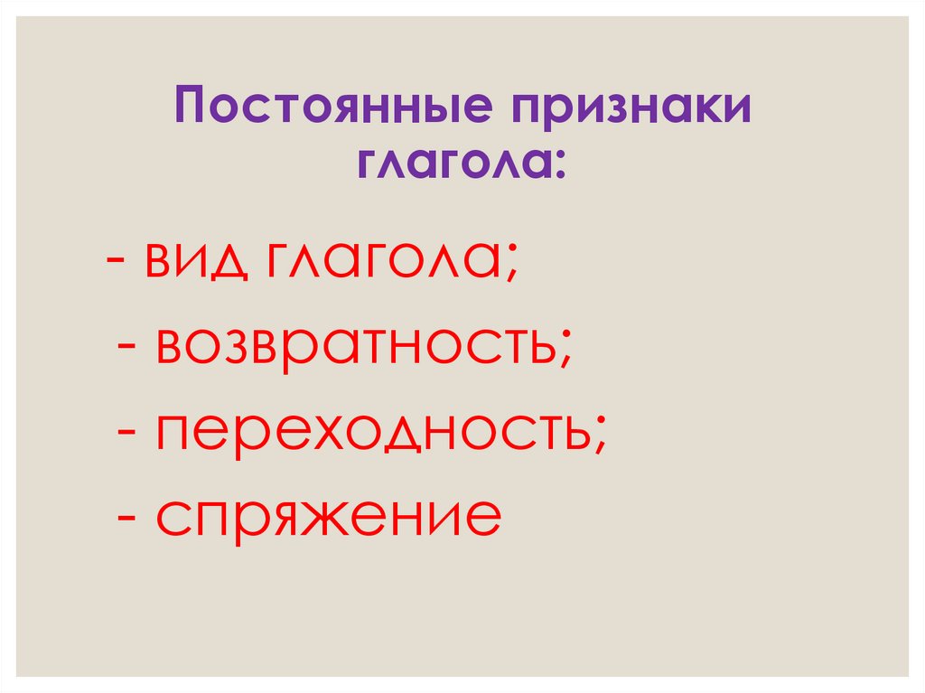 Постоянные признакиглагола: