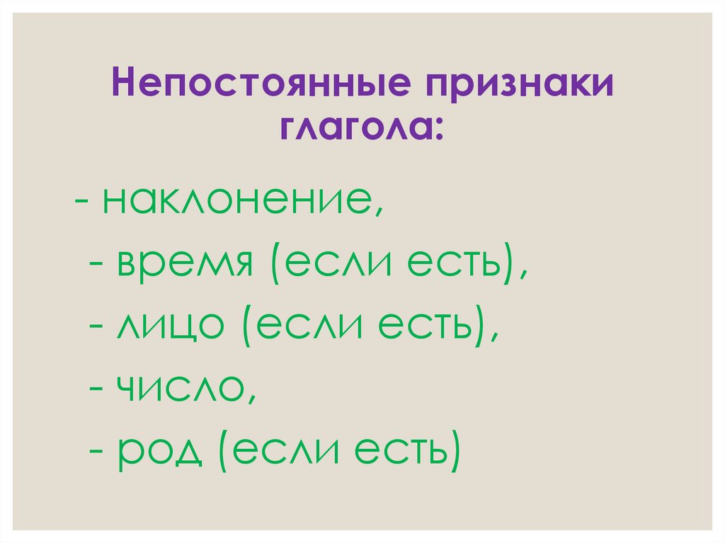 Непостоянные признакиглагола: