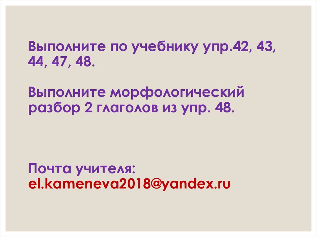 Выполните по учебнику упр.42, 43,44, 47, 48.