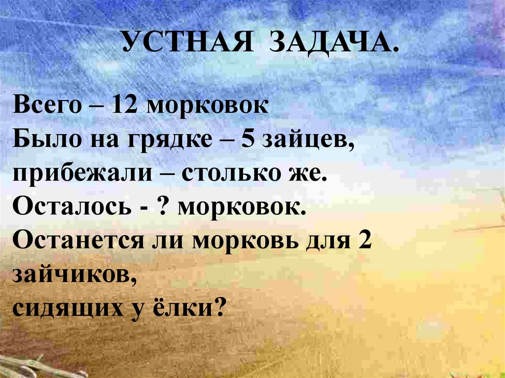 УСТНАЯ ЗАДАЧА.Всего – 12 морковок