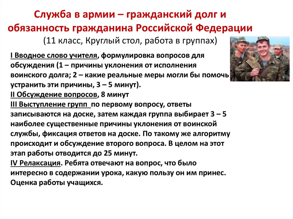 Служба в армии – гражданский долг иобязанность гражданина Российской Федерации