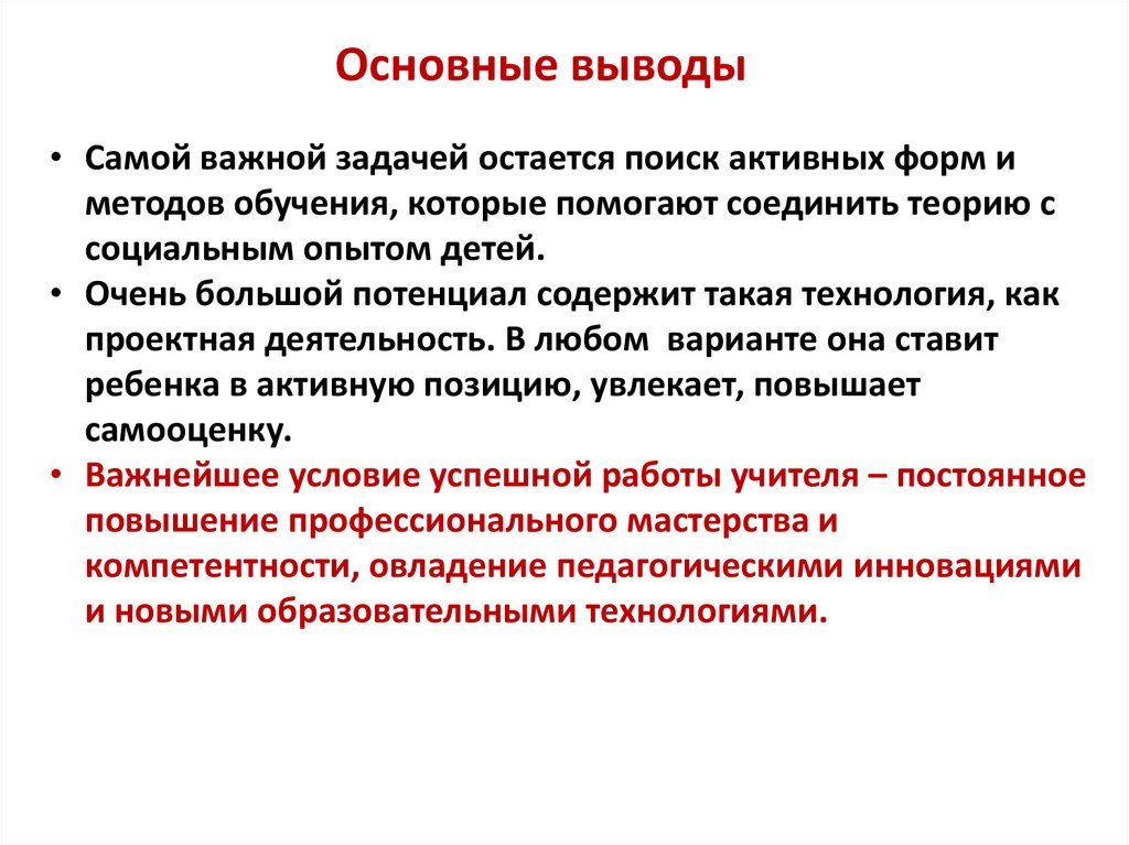 • Важнейшее условие успешной работы учителя – постоянное