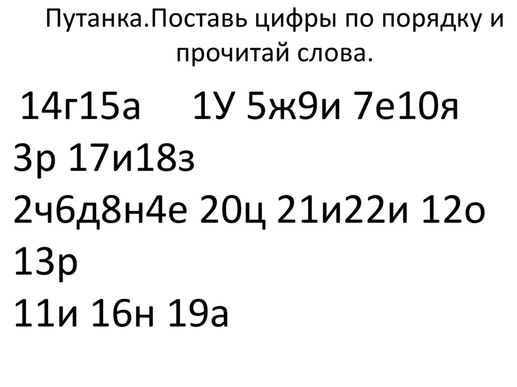 Путанка.Поставь цифры по порядку ипрочитай слова.