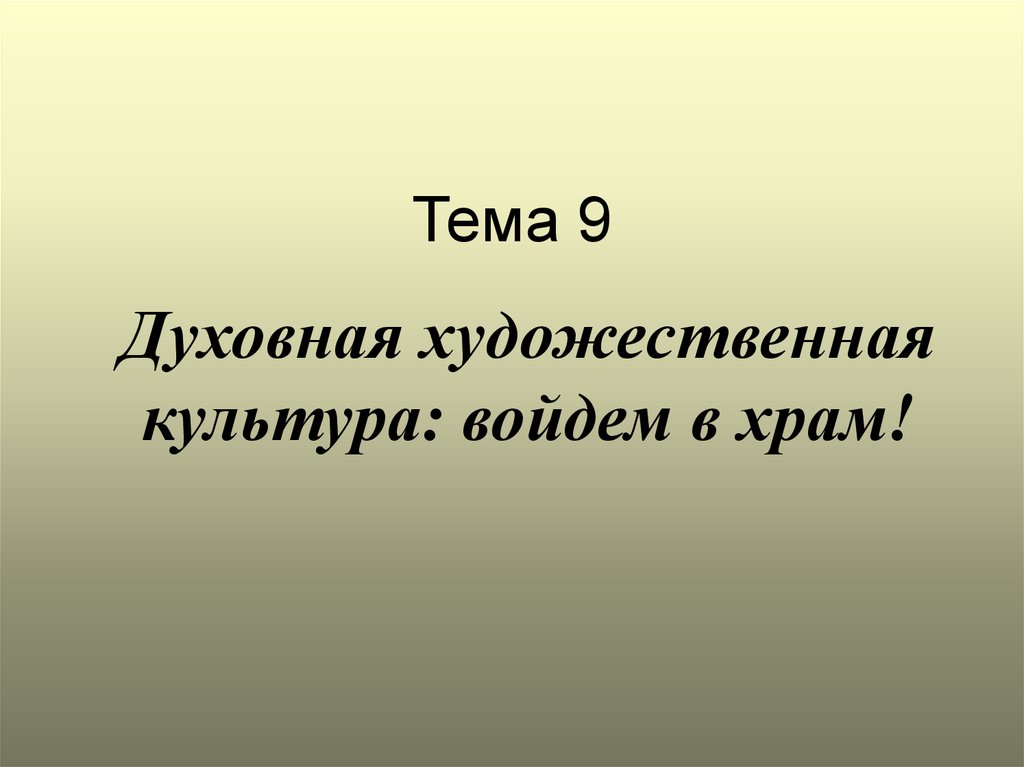 Духовная художественная культура: войдем в храм! Тема 9