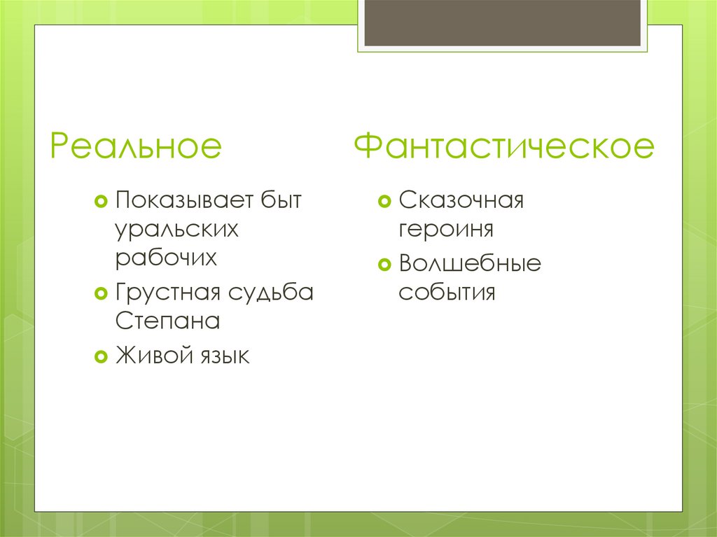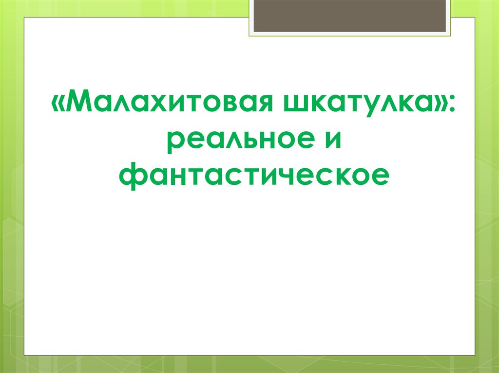 «Малахитовая шкатулка»:реальное и
