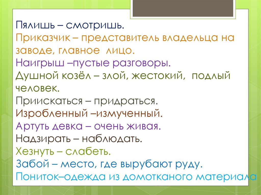 Пялишь – смотришь.Приказчик – представитель владельца на