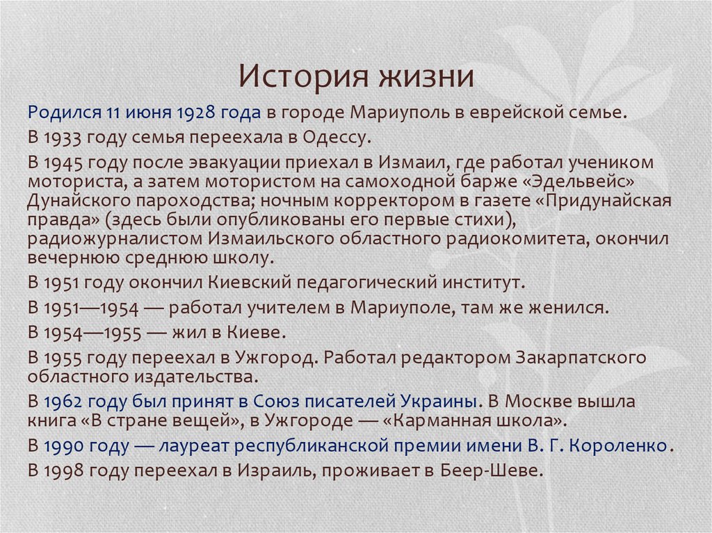 История жизниРодился 11 июня 1928 года в городе Мариуполь в еврейской семье.