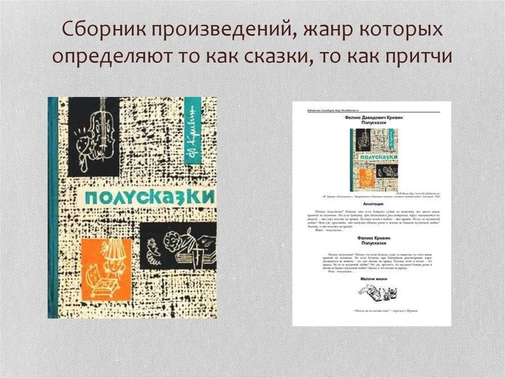 Сборник произведений, жанр которыхопределяют то как сказки, то как притчи