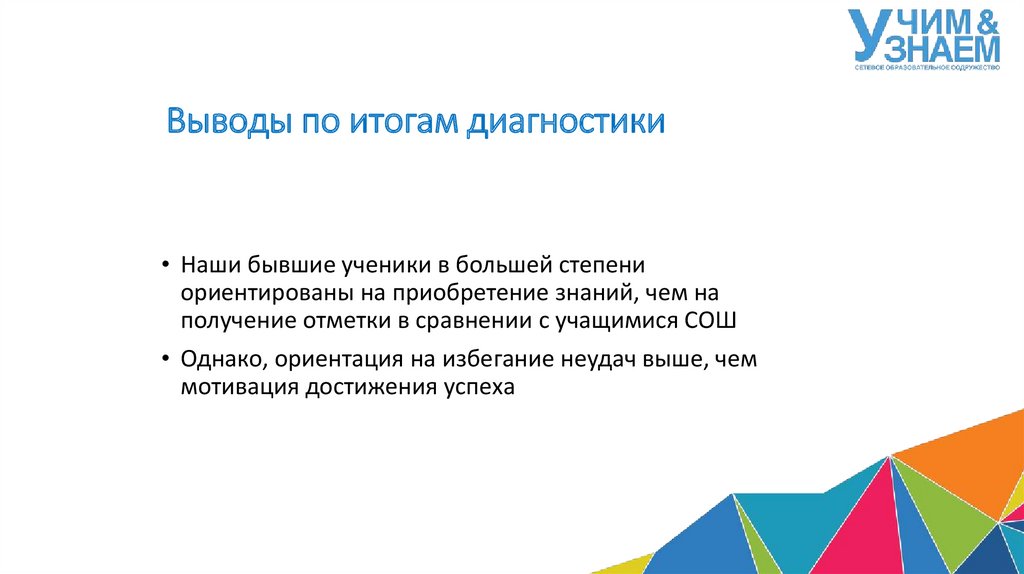 Выводы по итогам диагностики• Наши бывшие ученики в большей степени