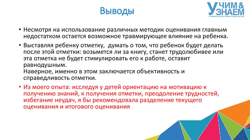 • Из моего опыта: исследуя у детей ориентацию на мотивацию к