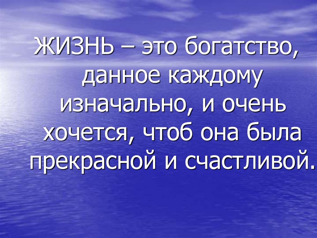 ЖИЗНЬ – это богатство,данное каждому