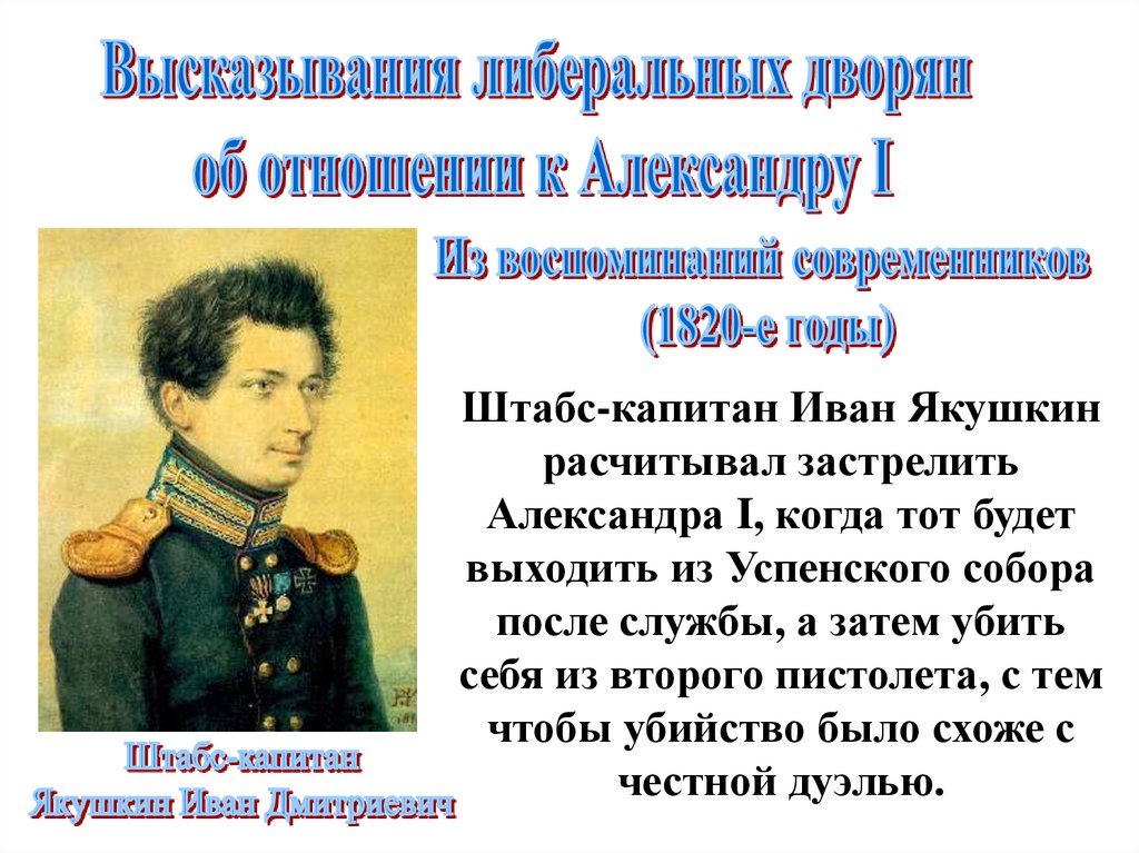 Штабс-капитан Иван Якушкинрасчитывал застрелить