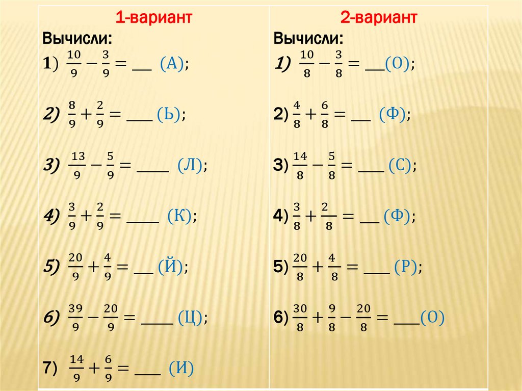 Все действия с обыкновенными дробями