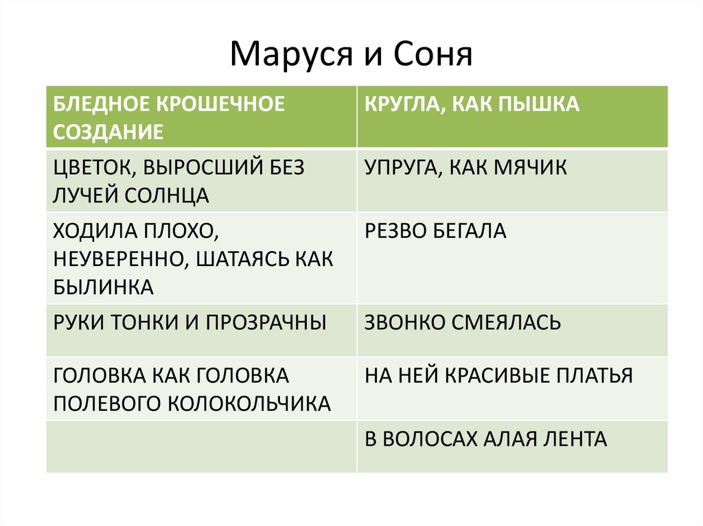 Маруся и Соня. Антитеза