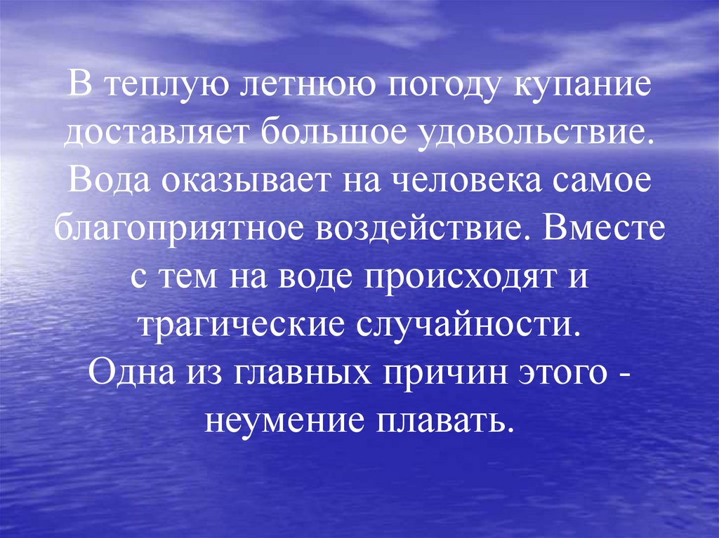 В теплую летнюю погоду купаниедоставляет большое удовольствие.