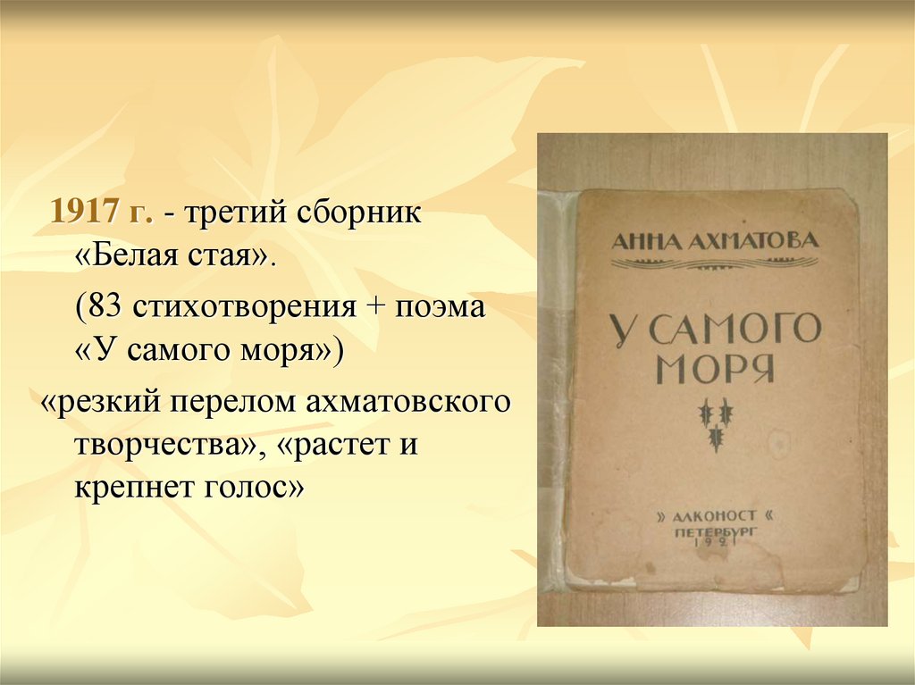 Третий сборник «Белая стая» (83 стих. + поэма «У самого моря»)
