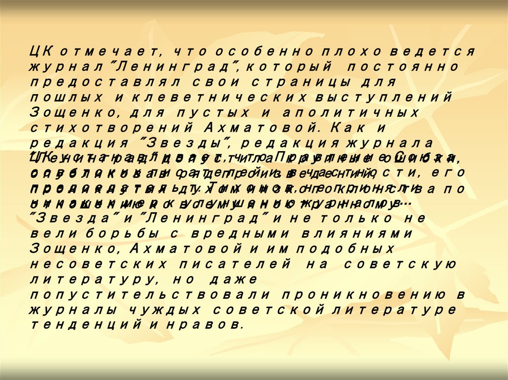 ЦК отмечает, что особенно плохо ведетсяжурнал "Ленинград", который постоянно