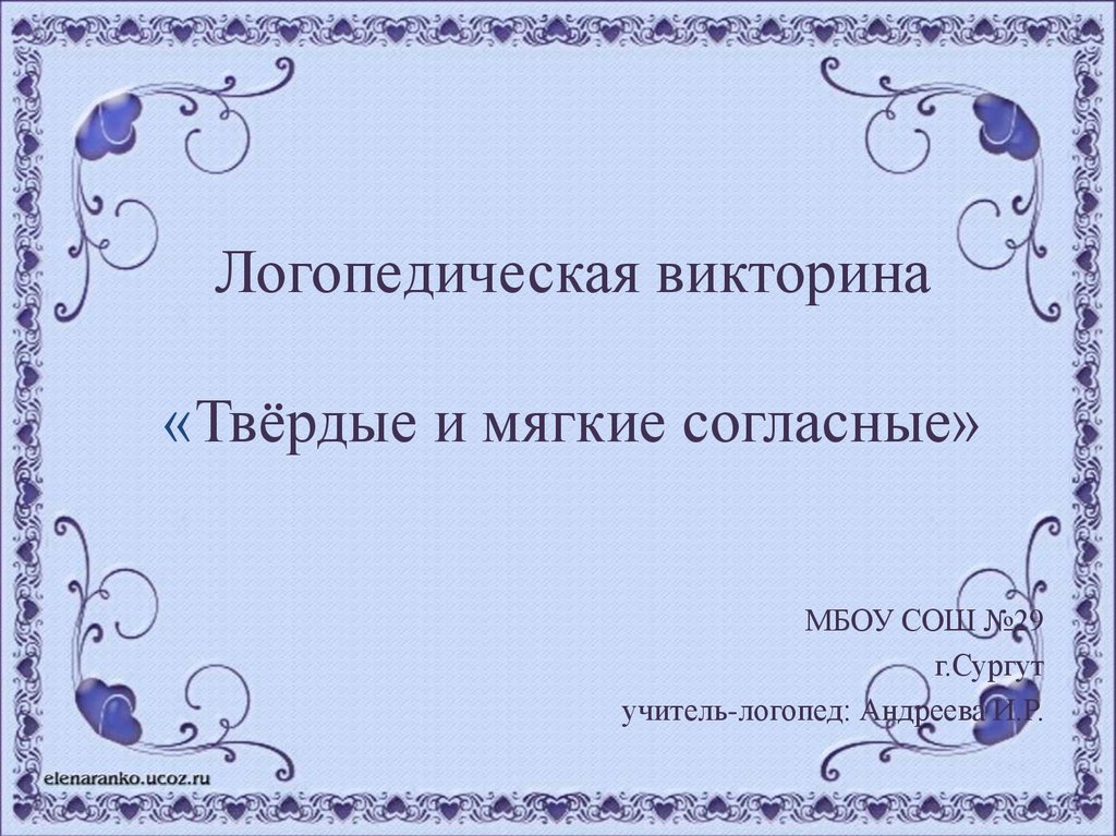 1. Логопедическая викторина «Твёрдые и мягкие согласные»