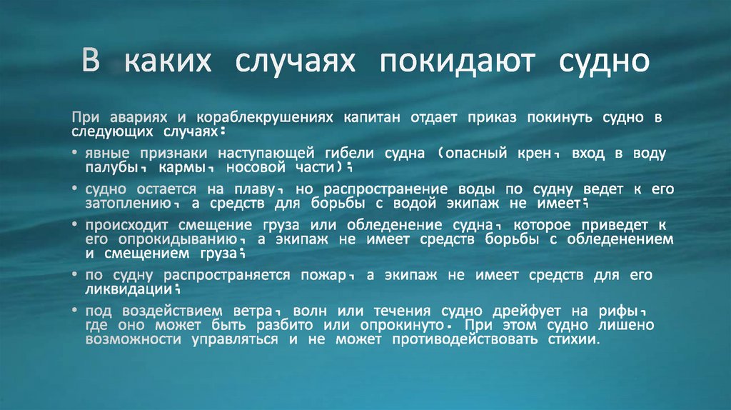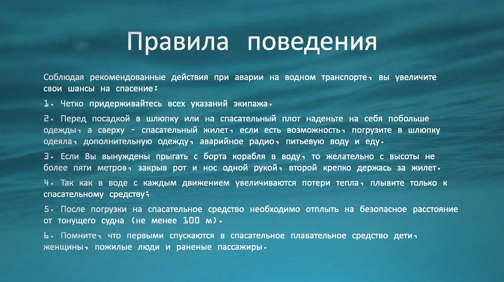 Правила поведения при аварии на водном транспорте