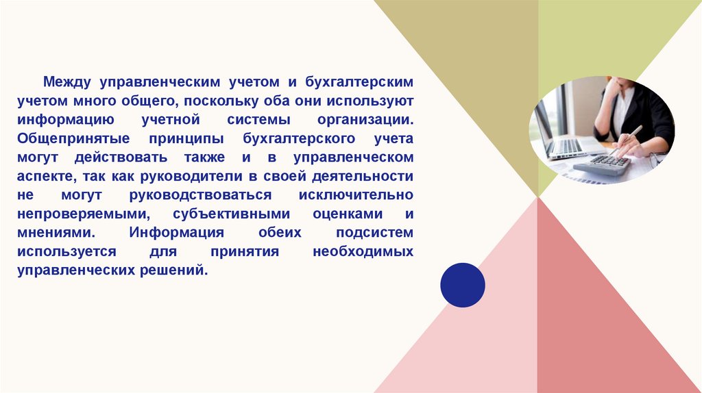 Между управленческим учетом и бухгалтерскимучетом много общего, поскольку оба они используют