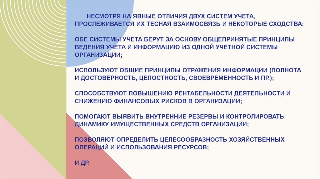 НЕСМОТРЯ НА ЯВНЫЕ ОТЛИЧИЯ ДВУХ СИСТЕМ УЧЕТА,ПРОСЛЕЖИВАЕТСЯ ИХ ТЕСНАЯ ВЗАИМОСВЯЗЬ И НЕКОТОРЫЕ СХОДСТВА: