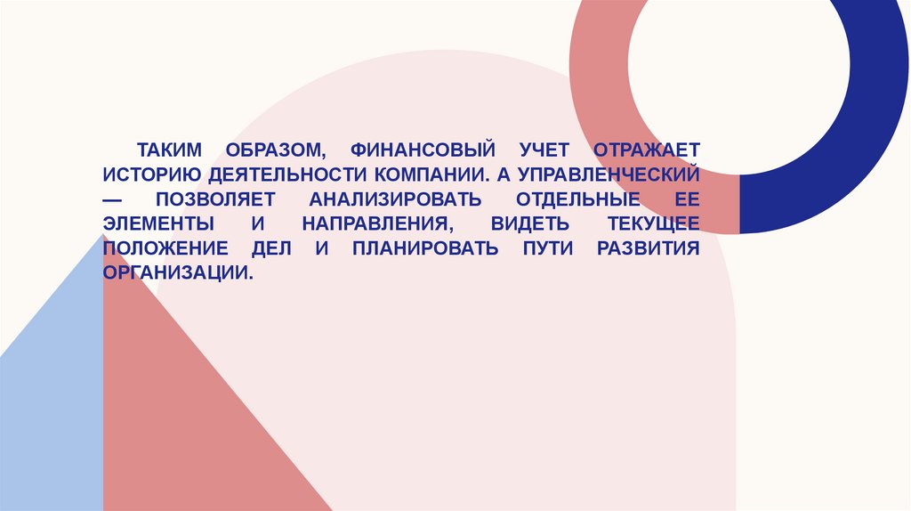 ТАКИМ ОБРАЗОМ, ФИНАНСОВЫЙ УЧЕТ ОТРАЖАЕТИСТОРИЮ ДЕЯТЕЛЬНОСТИ КОМПАНИИ. А УПРАВЛЕНЧЕСКИЙ