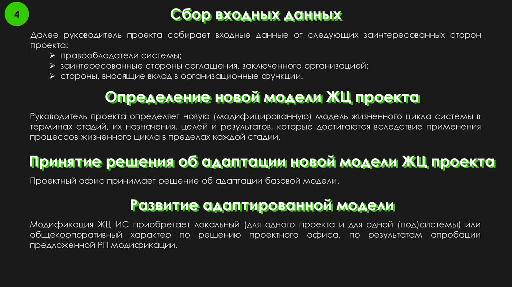 Принятие решения об адаптации новой модели ЖЦ проекта;
