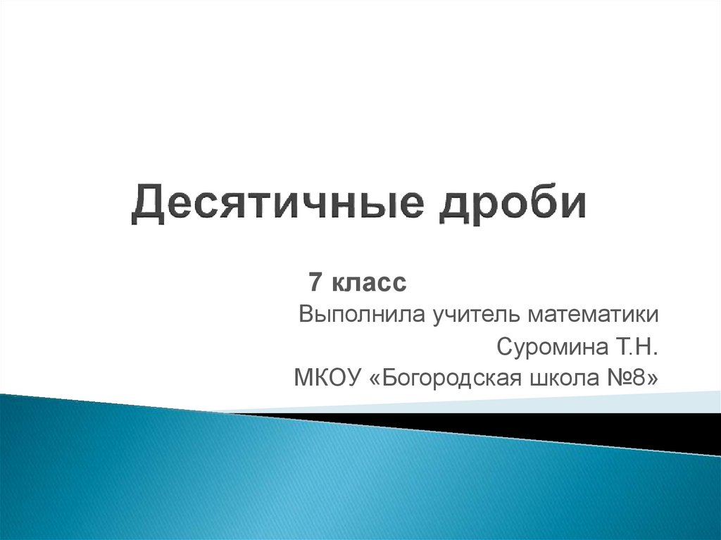 Действия с десятичными дробями. Проценты. Урок в 7 классе