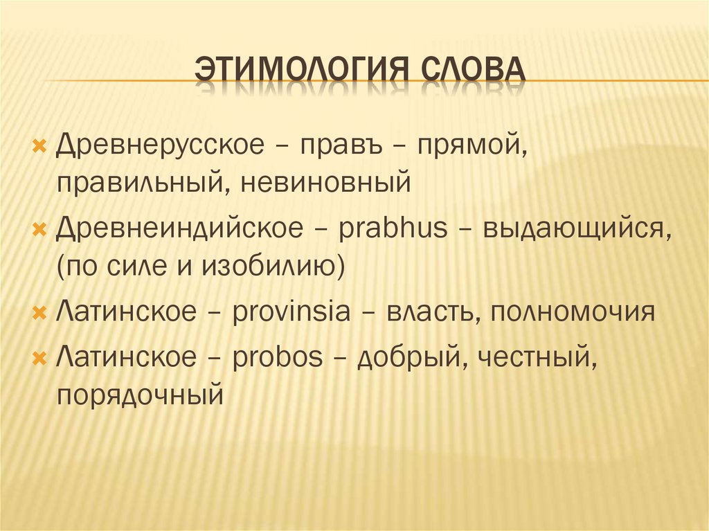 ЭТИМОЛОГИЯ СЛОВАДревнерусское – правъ – прямой,