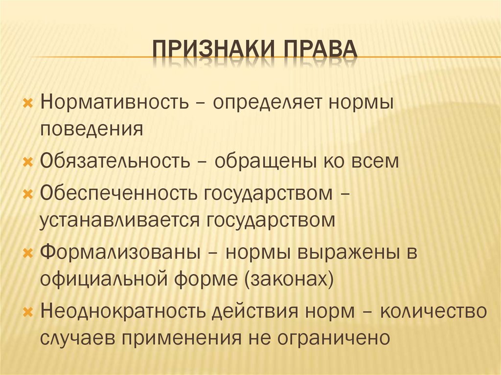ПРИЗНАКИ ПРАВАНормативность – определяет нормы