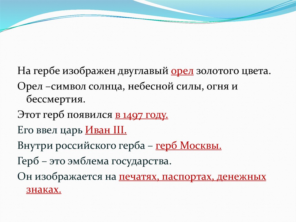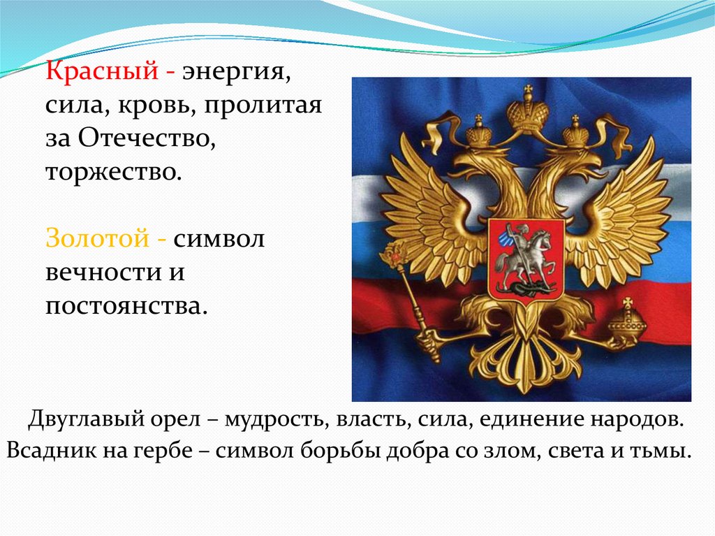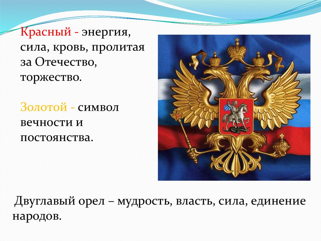 Двуглавый орел – мудрость, власть, сила, единение народов.