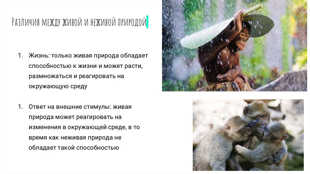 Различия между живой и неживой природой1. Жизнь: только живая природа обладает