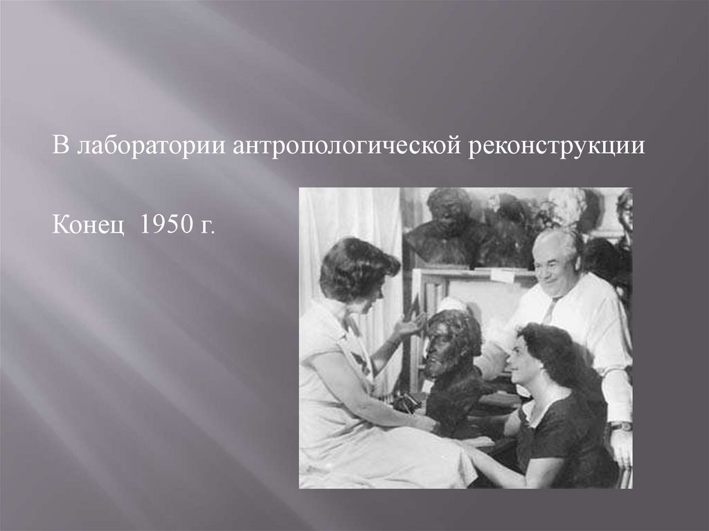 В лаборатории антропологической реконструкцииКонец 1950 г.