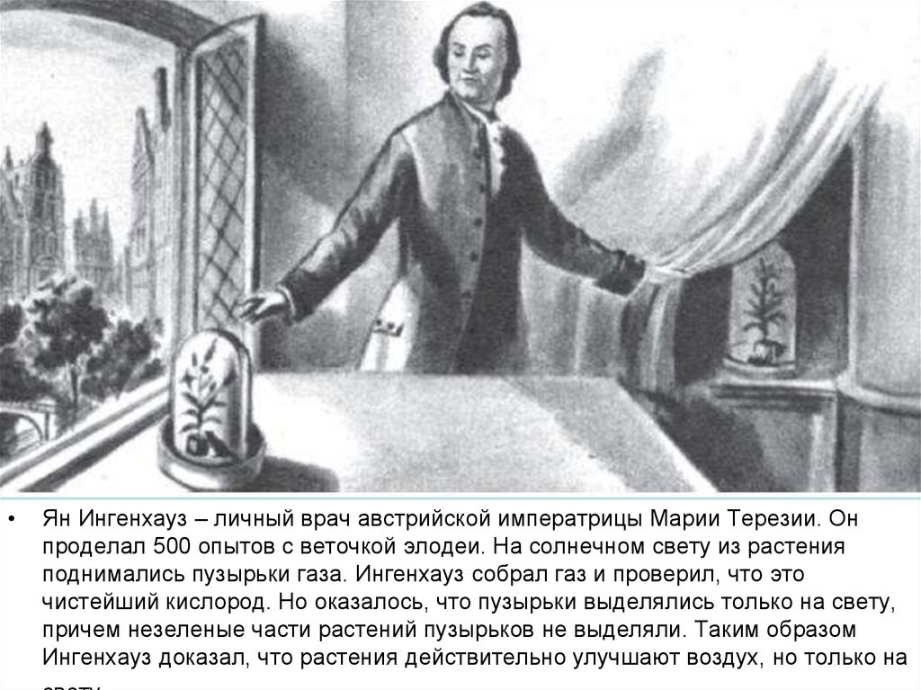 Ингенхауз доказал, что растения действительно улучшают воздух, но только на
