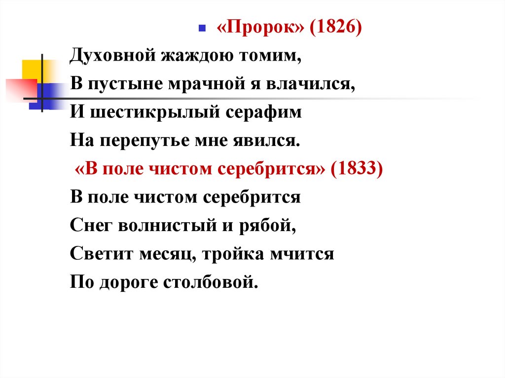 «Пророк» (1826)Духовной жаждою томим,