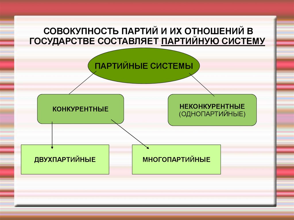 СОВОКУПНОСТЬ ПАРТИЙ И ИХ ОТНОШЕНИЙ ВГОСУДАРСТВЕ СОСТАВЛЯЕТ ПАРТИЙНУЮ СИСТЕМУ