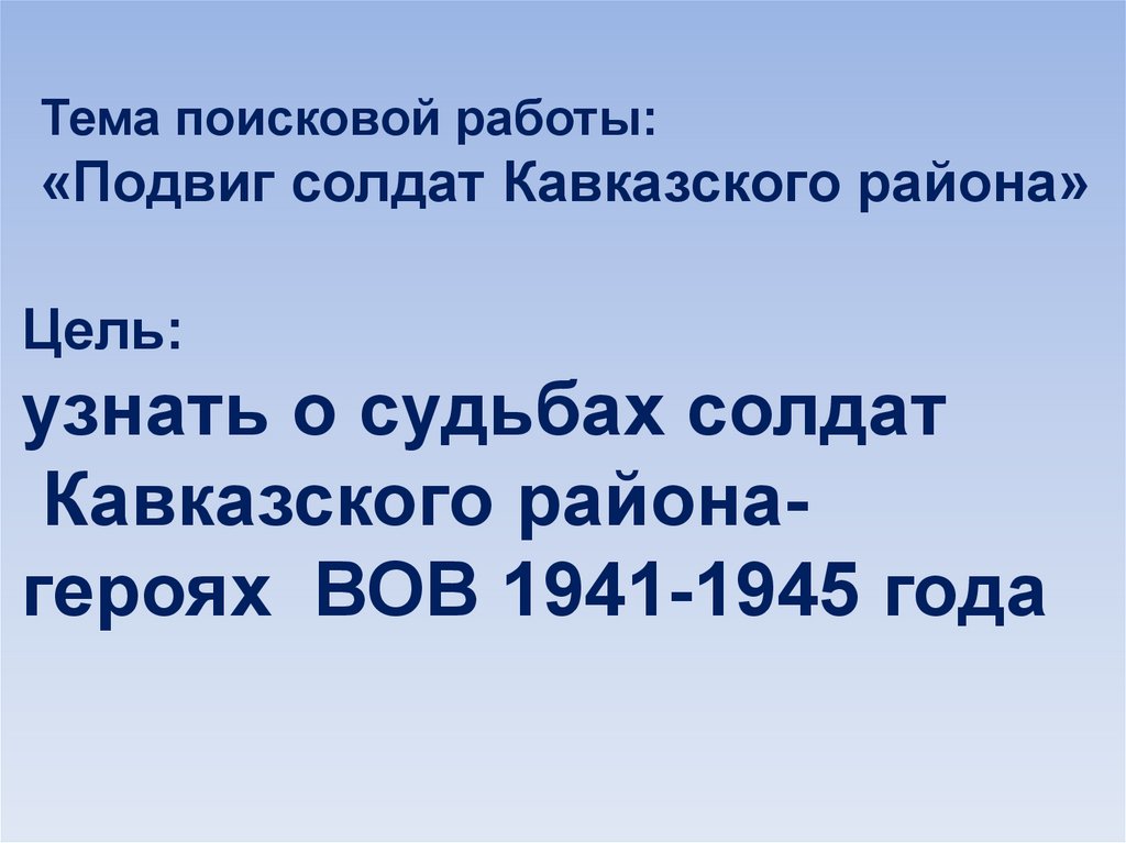 Тема поисковой работы:«Подвиг солдат Кавказского района»