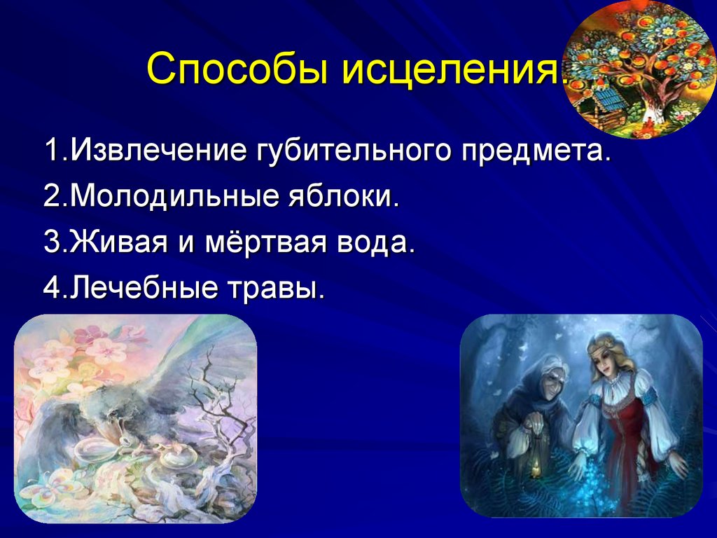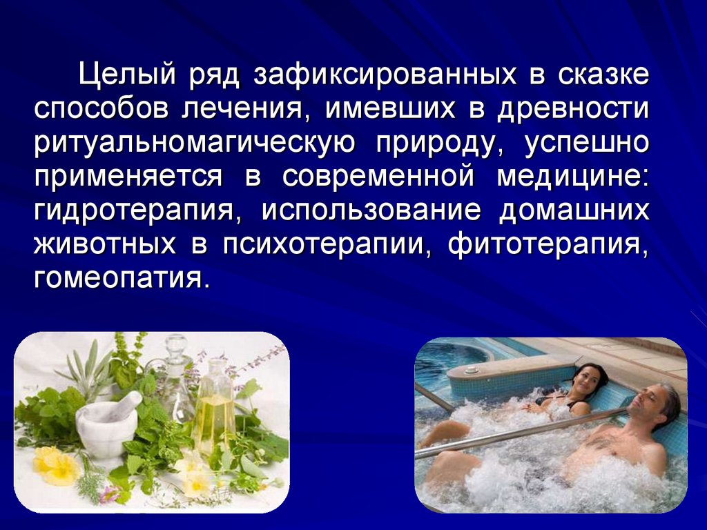 Целый ряд зафиксированных в сказкеспособов лечения, имевших в древности