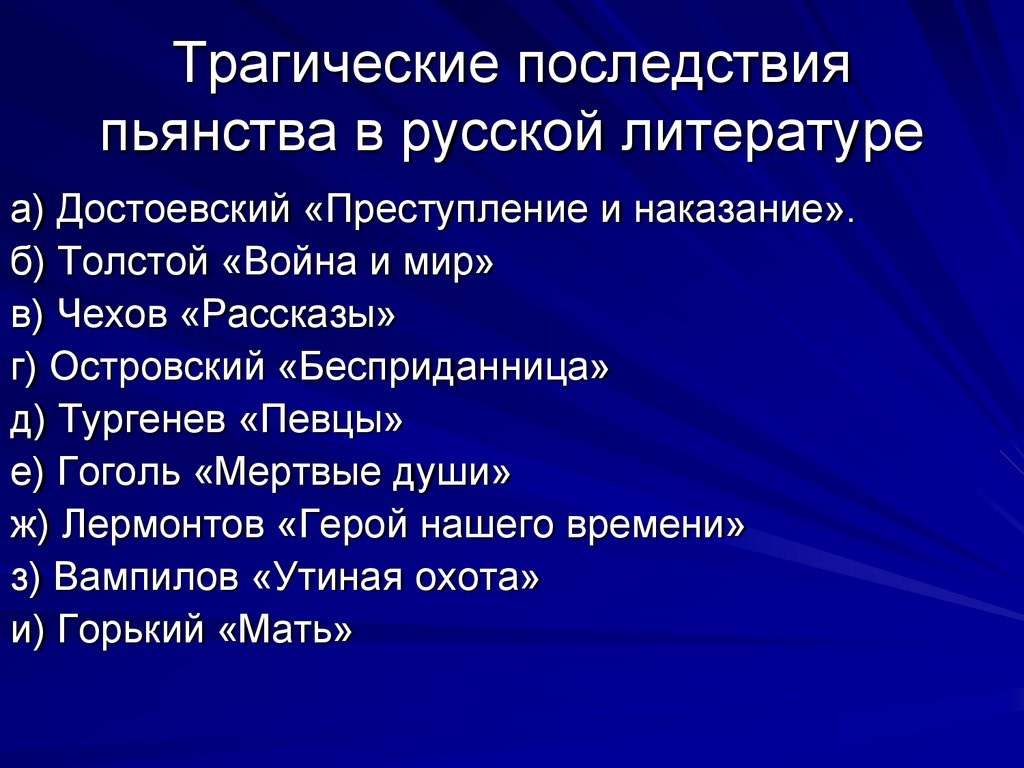 Трагические последствияпьянства в русской литературе