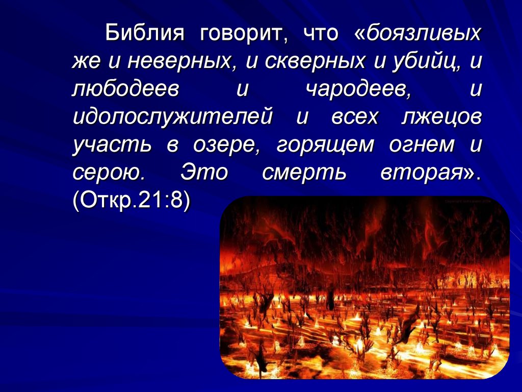 Библия говорит, что «боязливыхже и неверных, и скверных и убийц, и